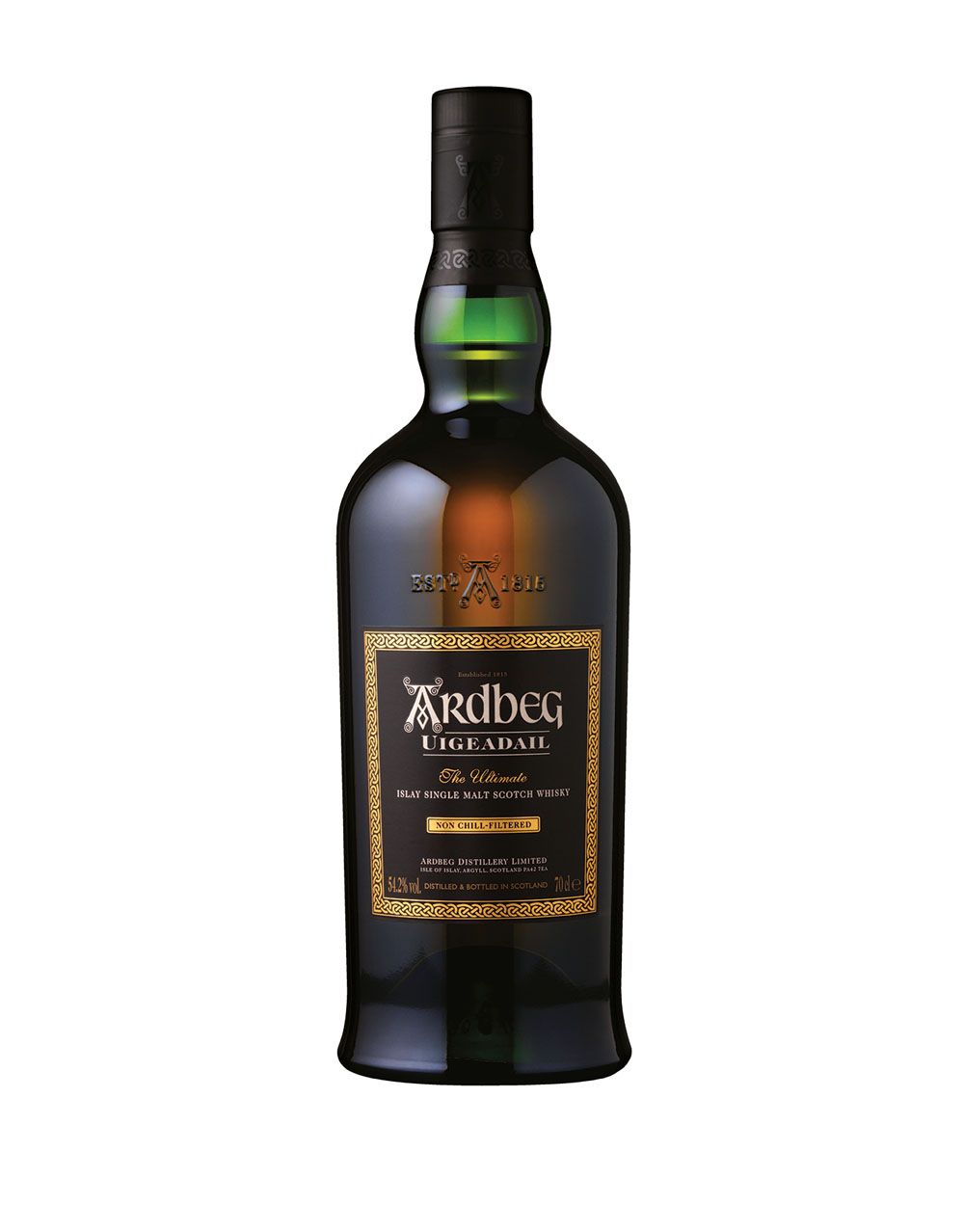 Typically most whiskies are chill-filtered and reduced to a strength of 40% ABV. Ardbeg Uigeadail, however, is non chill-filtered at high strength (54.2% ABV non chill-filtered), which retains maximum flavor and gives more body and added depth.
