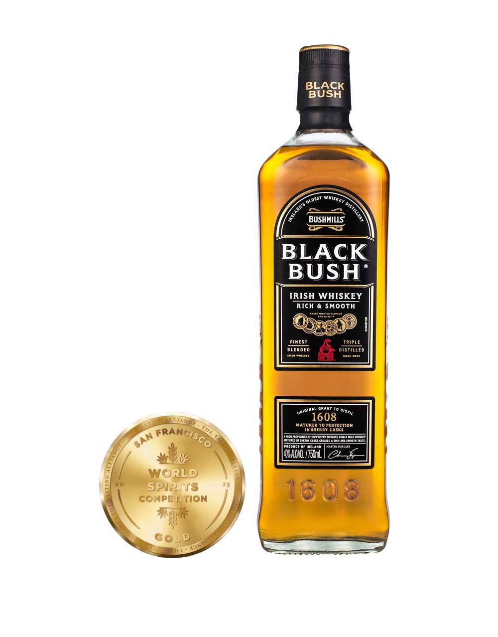 Bushmills Black Bush™ Irish Whiskey is a rich, dark blend (hence the name), the result of maturing for several years in Spanish Oloroso sherry casks and sweet bourbon barrels. The 80% malt premium whiskey floats across the tongue to deliver dark, velvety fruity notes.